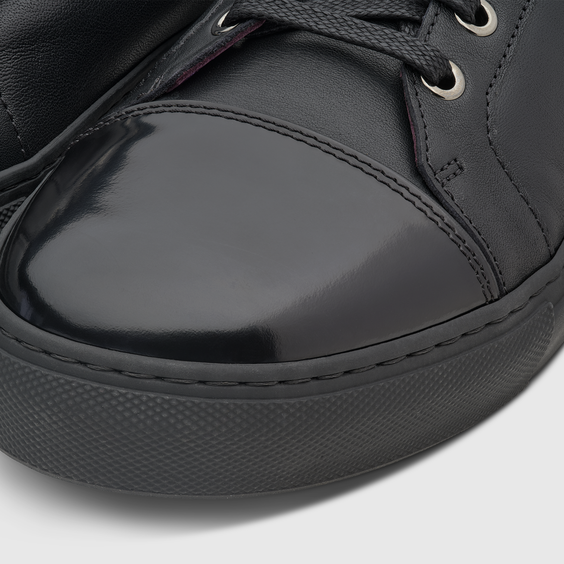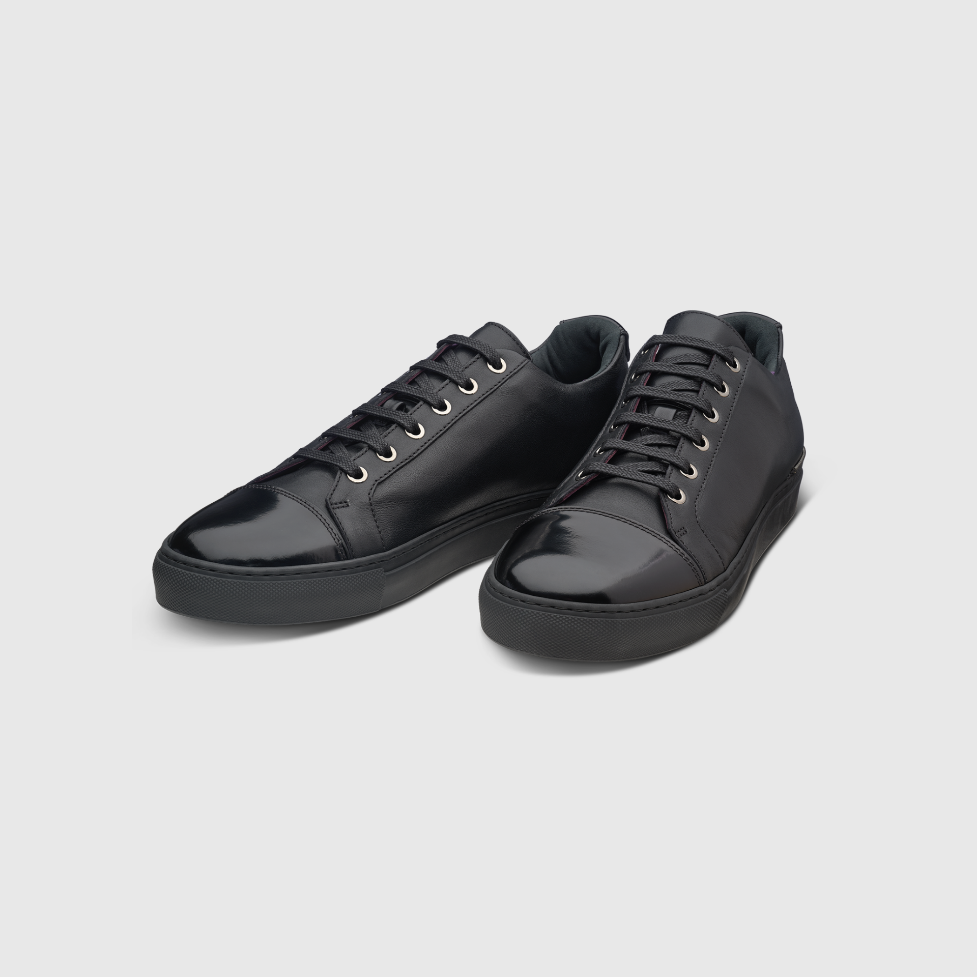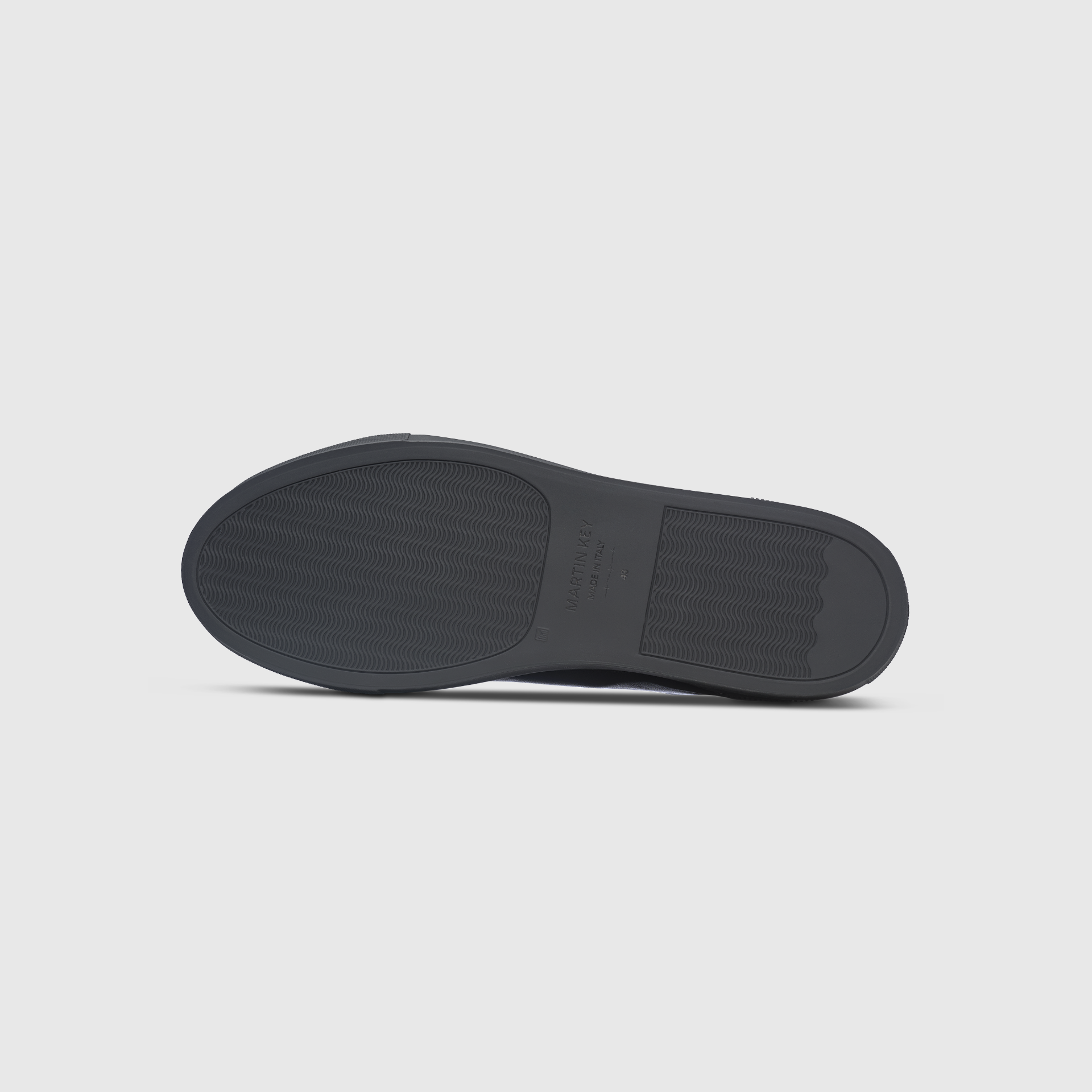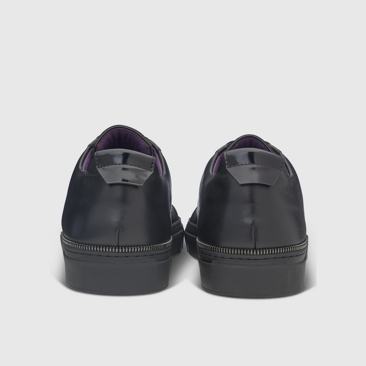 Low laced sneakers in black nubuck leather. Inside with purple details and an embossed octagon. Outer sole in black rubber.