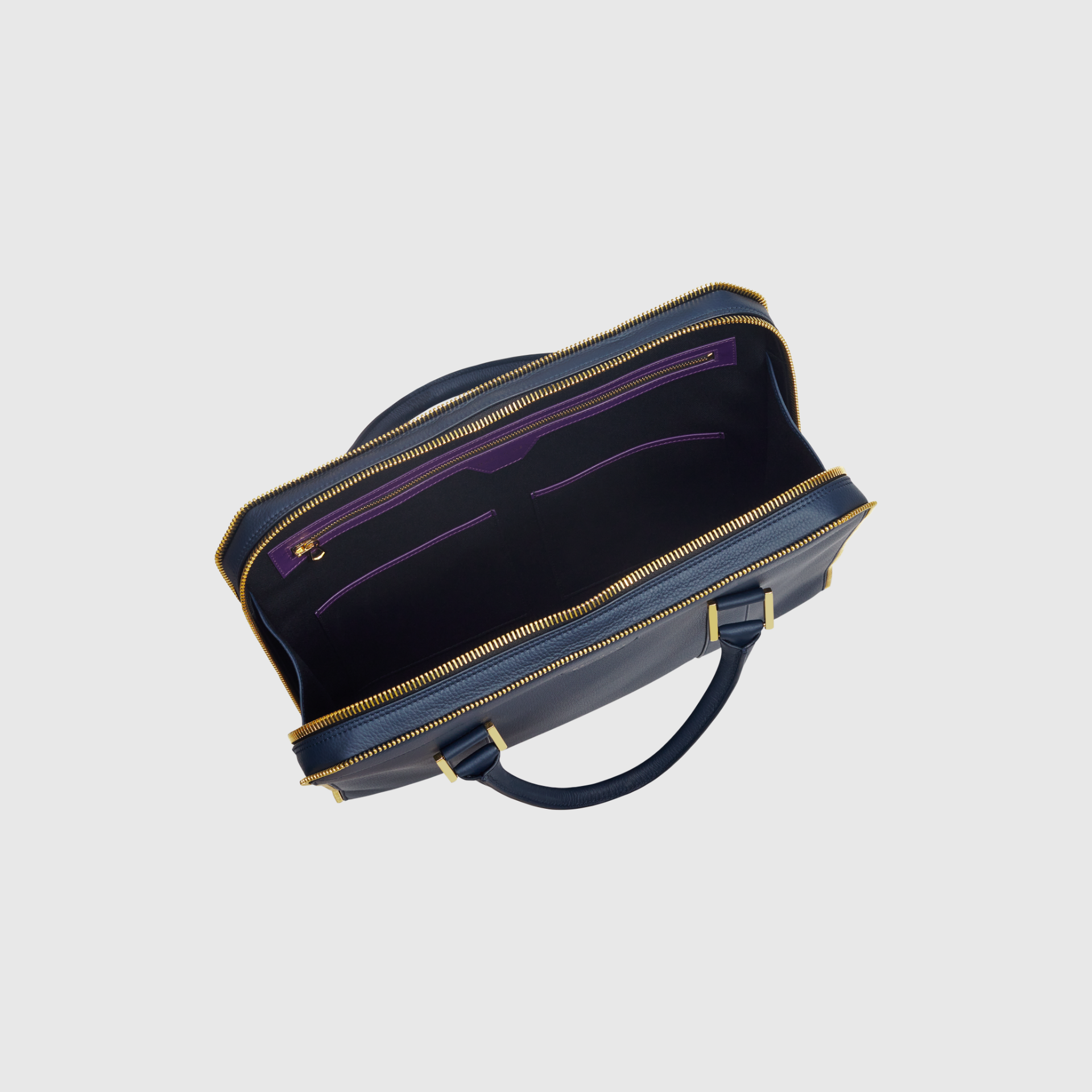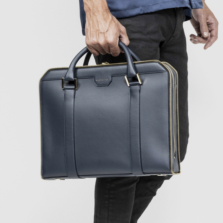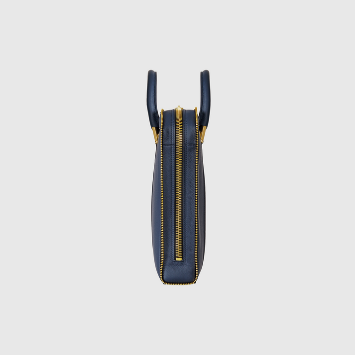 A briefcase in calf leather with a zipper in gold. A fusion of attitude and elegance, meticulously crafted for the individual who refuses to compromise on quality or design.