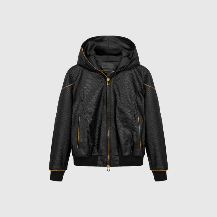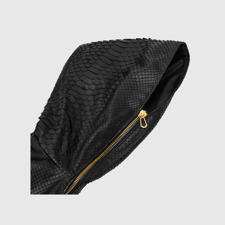 The first Martin Key jacket, the Python Hood, was born from my desire to create something bold, detailed, and full of attitude. Inspired by one of my first clients from Berlin, who commissioned a 100% python leather hoodie, this design became a signature piece. It represents the company’s humble beginnings and embodies Passion, Determination, and Guts. Without that client and the Python Hood, Martin Key might not exist today.
