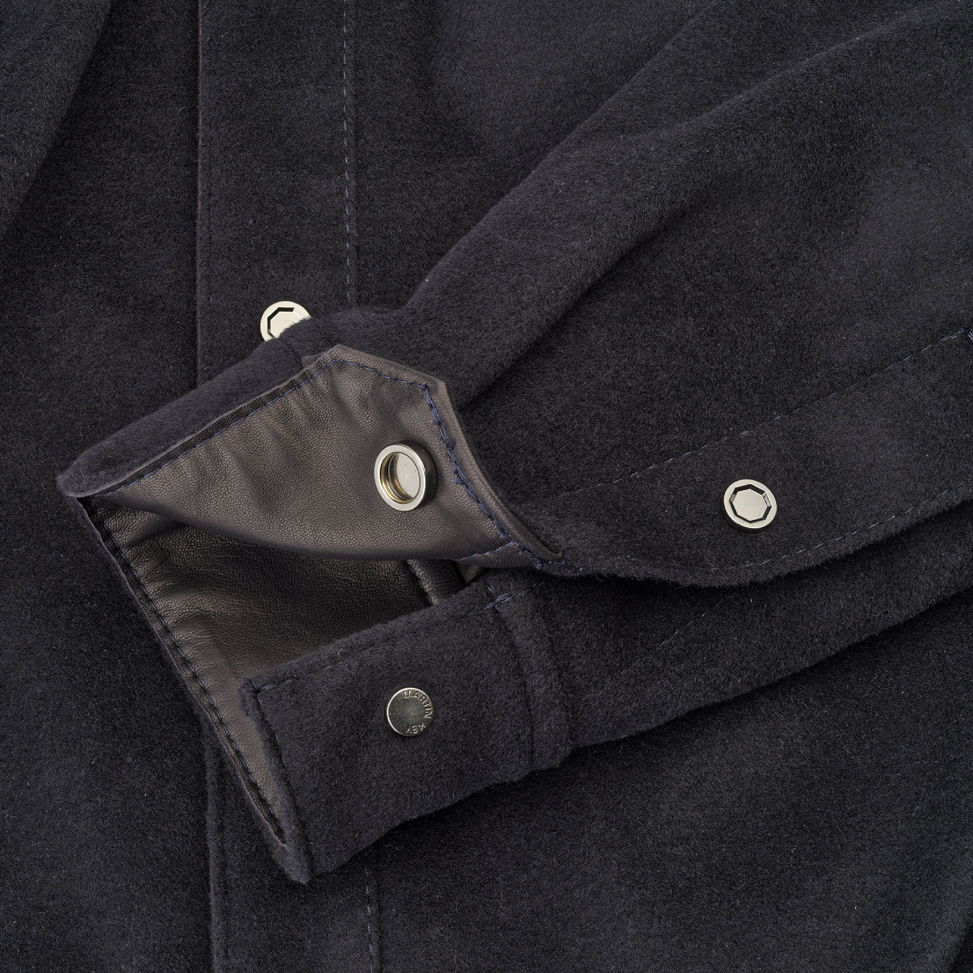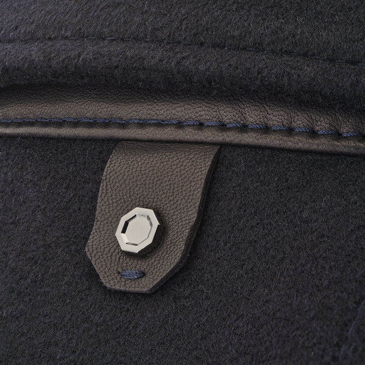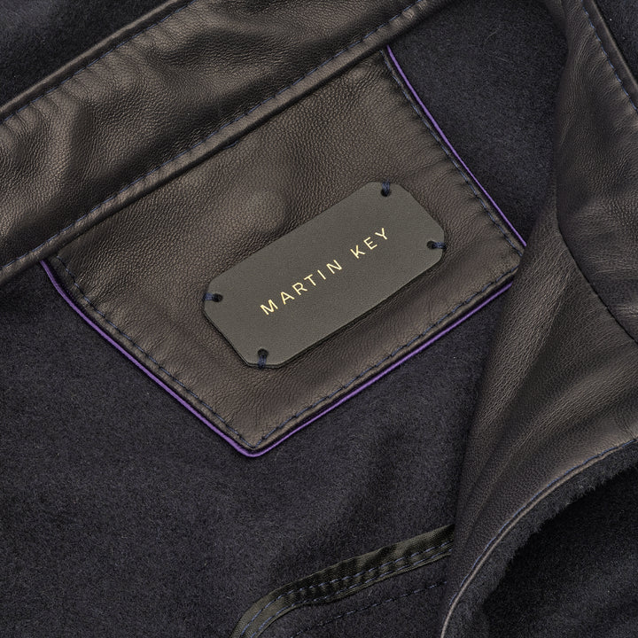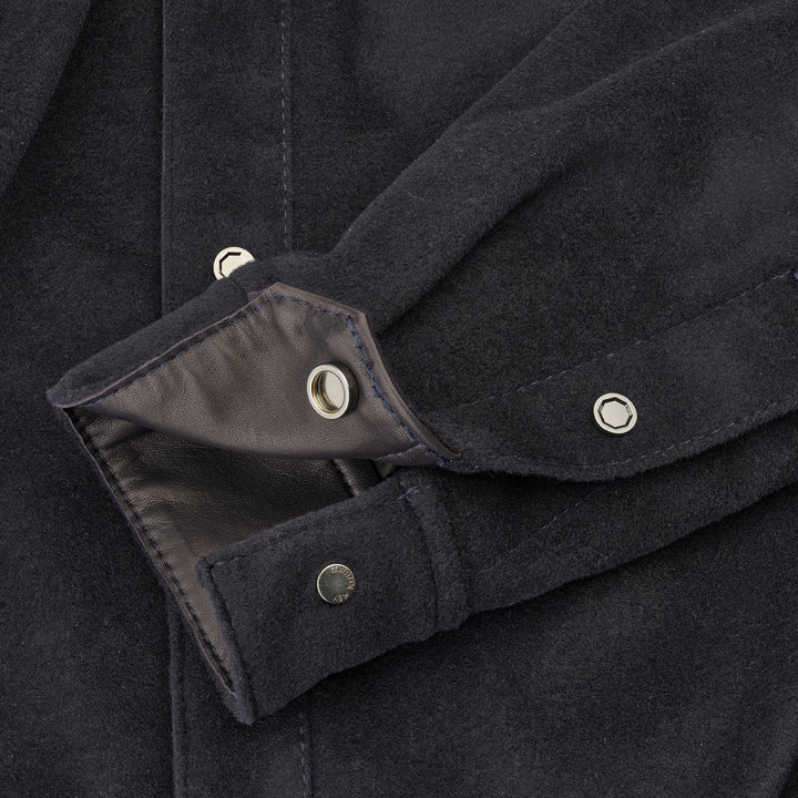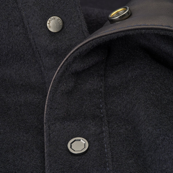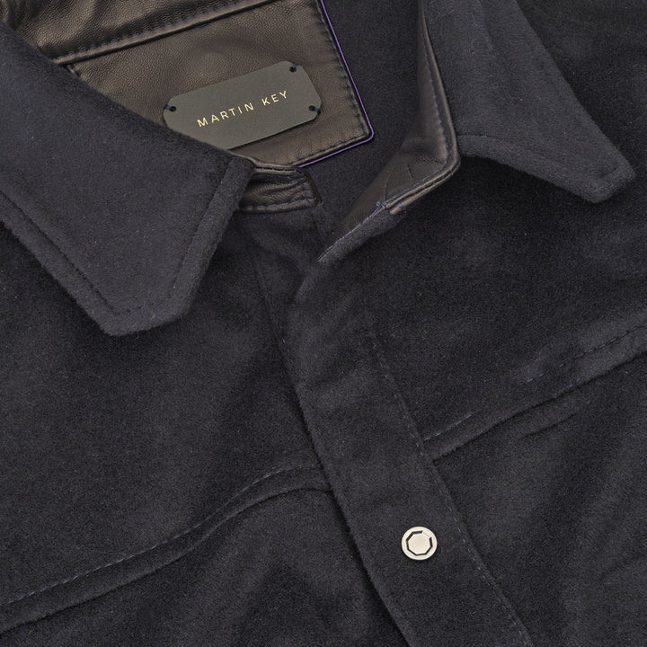Overshirt in Navy made in a Wool/Cashmere blend with buttons shaped as octagons and details in leather.