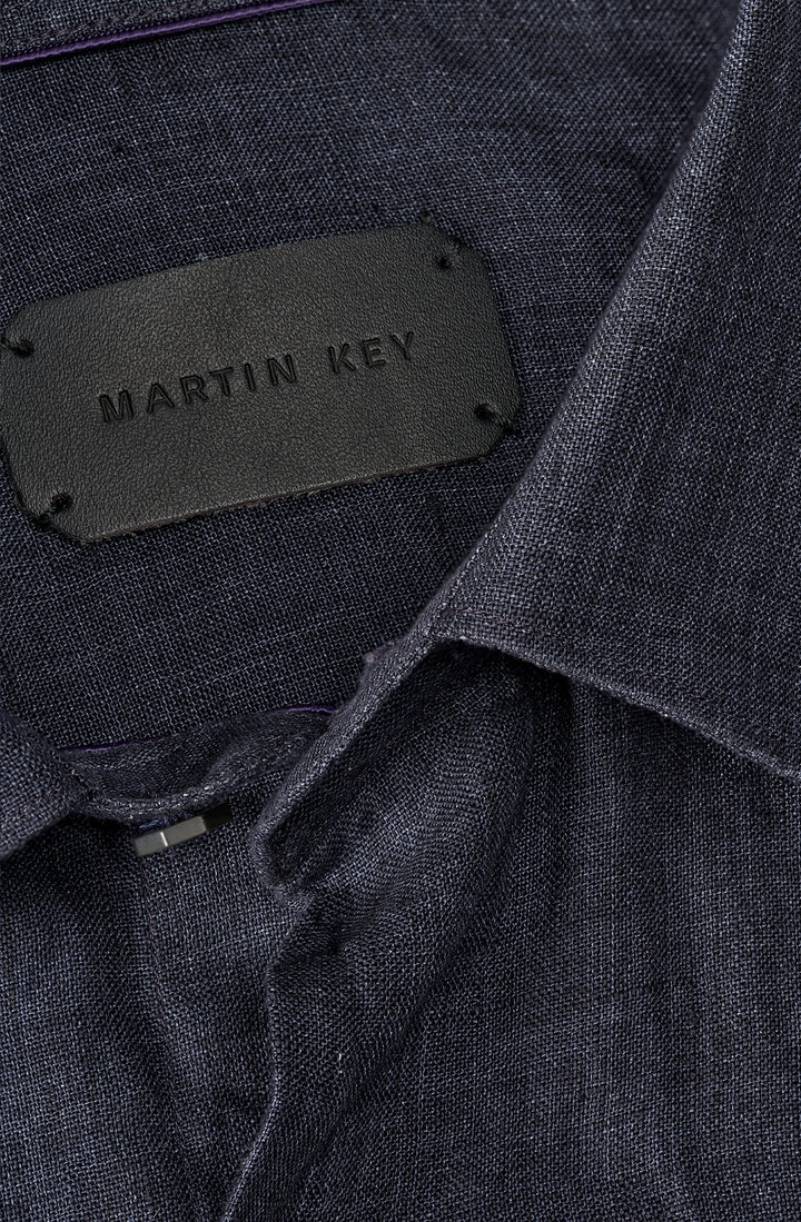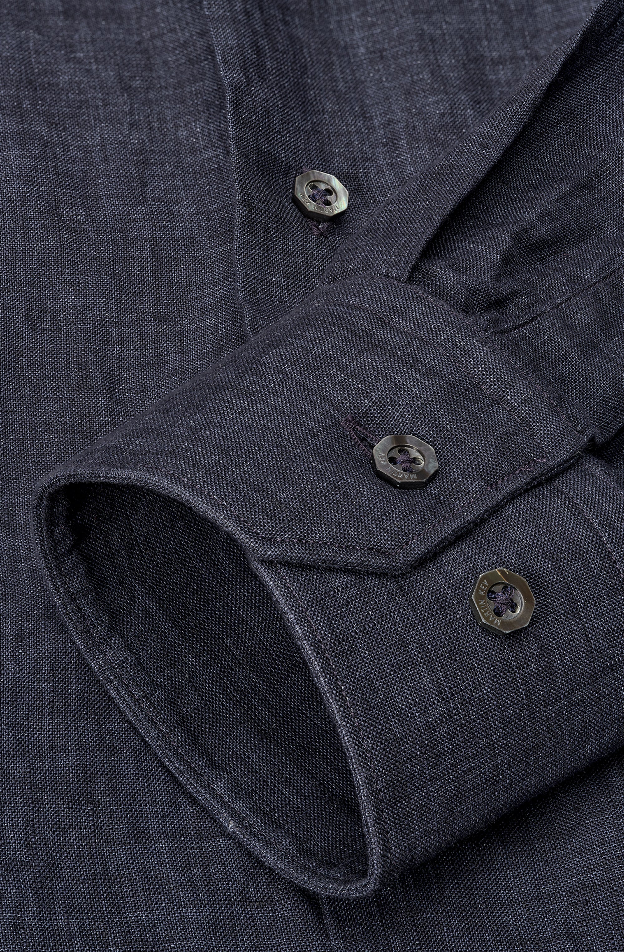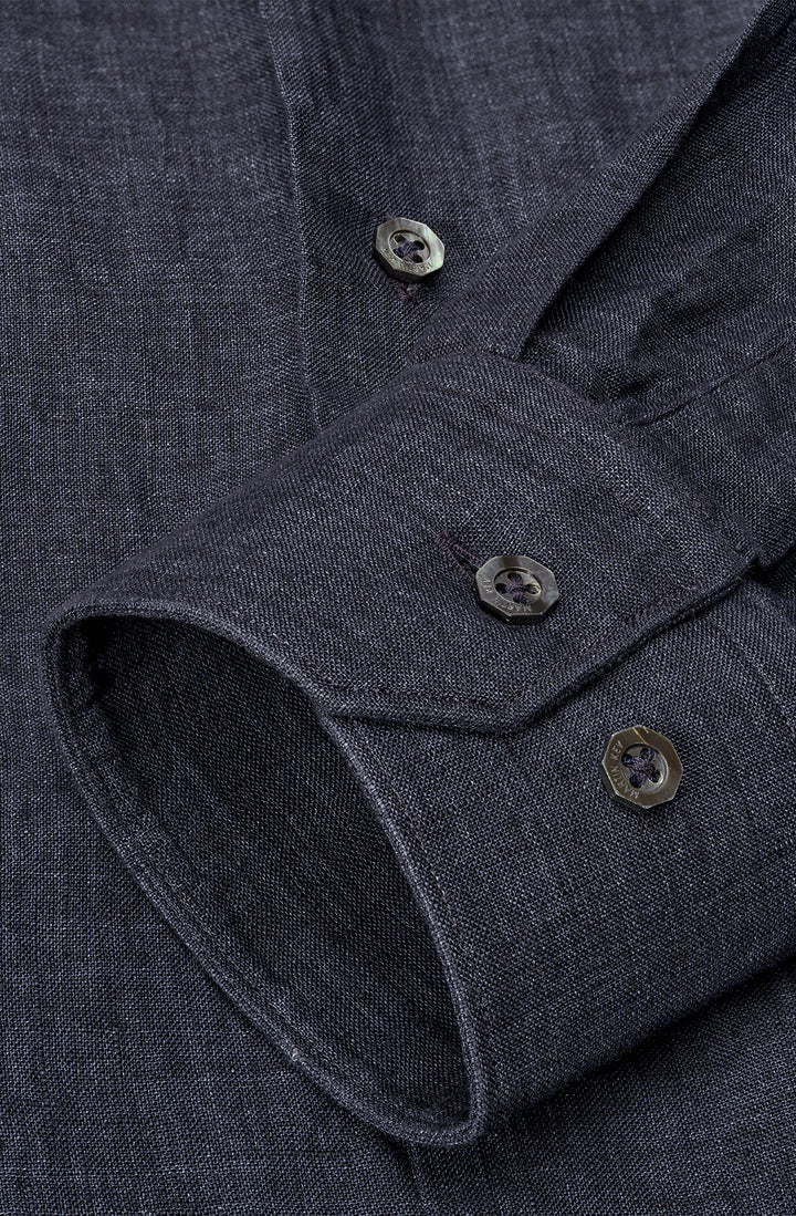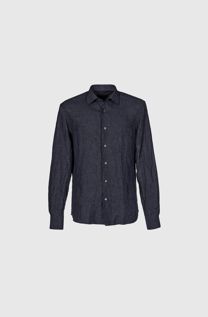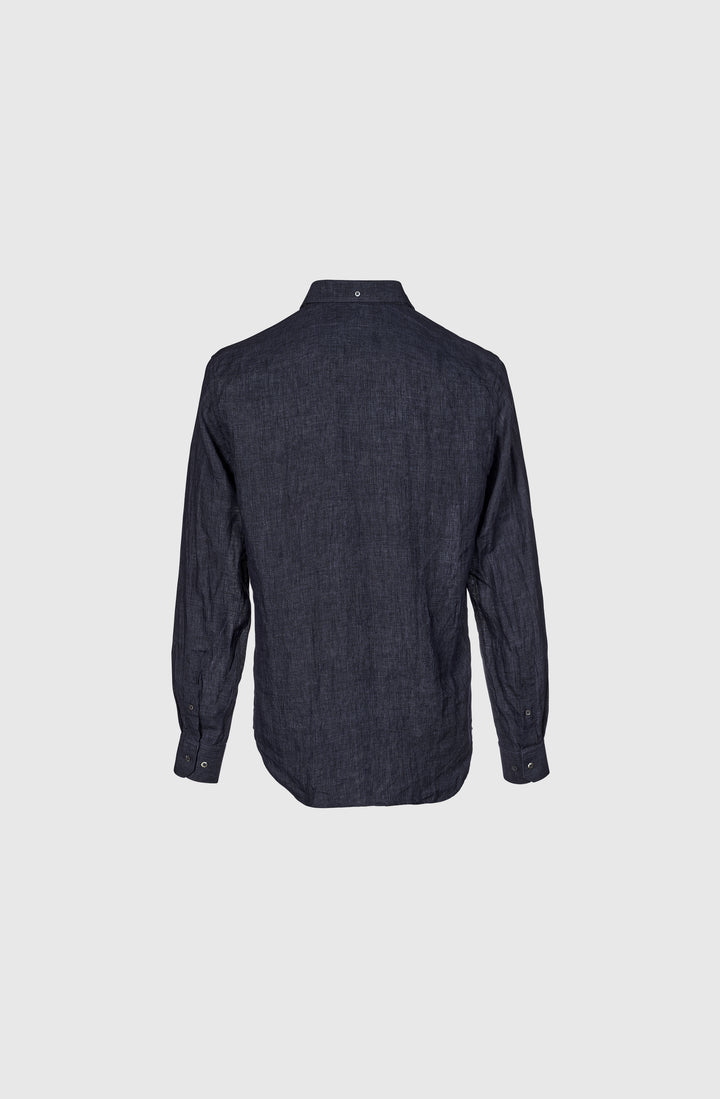 Shirt in Indigo linnen with buttons shaped as octagons .