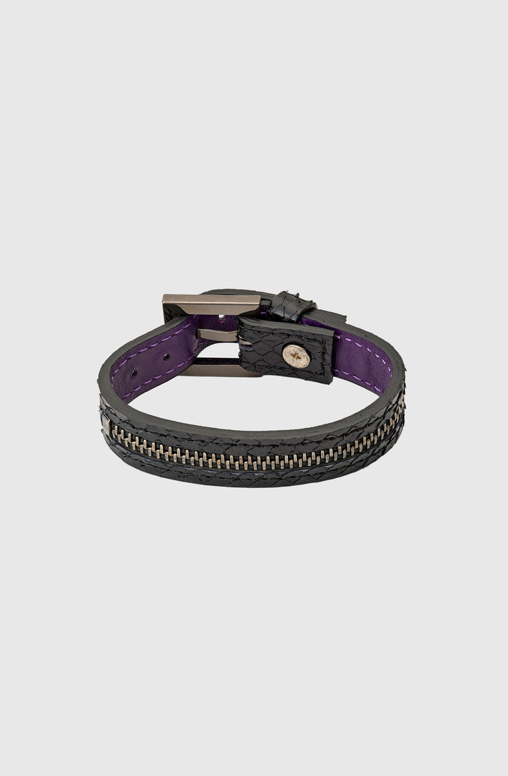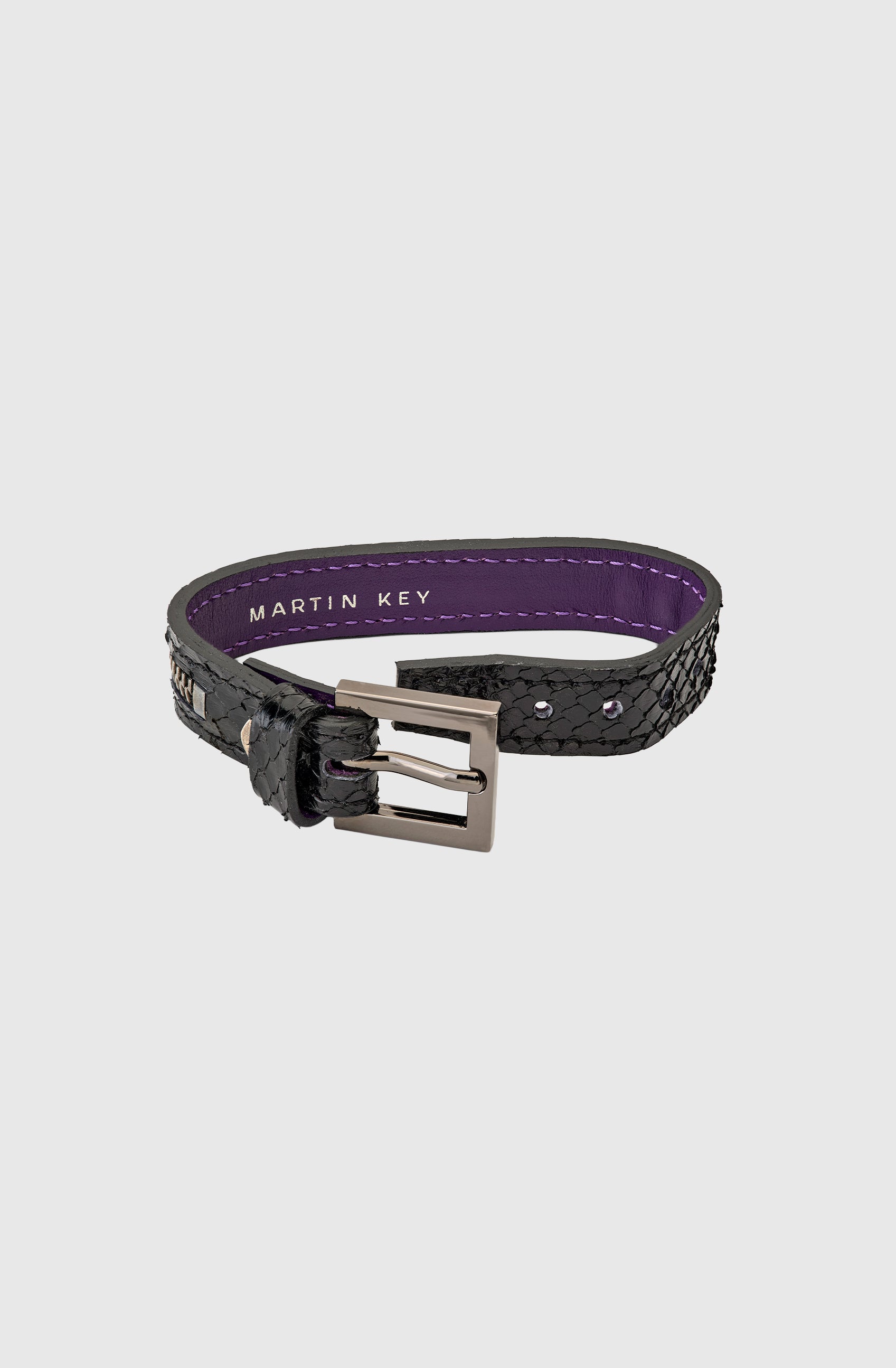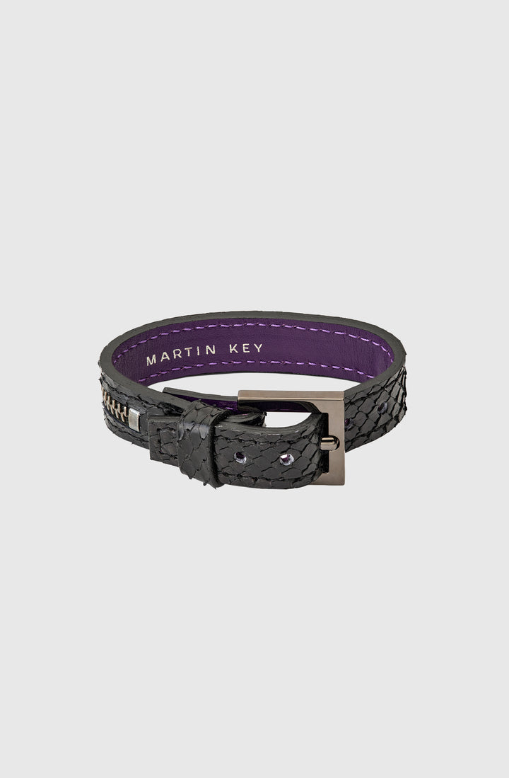Bracelet in black Python leather and zipper in Gun Metal. The inside of the bracelet have Martin Key's signature color, Rock'n'Roll purple.