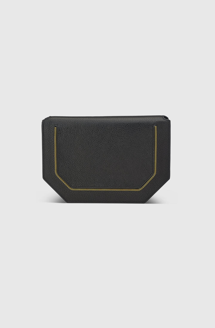 A bag in Calf leather with a zipper in Gold. A fusion of attitude and elegance, meticulously crafted for the individual who refuses to compromise on quality or design.
